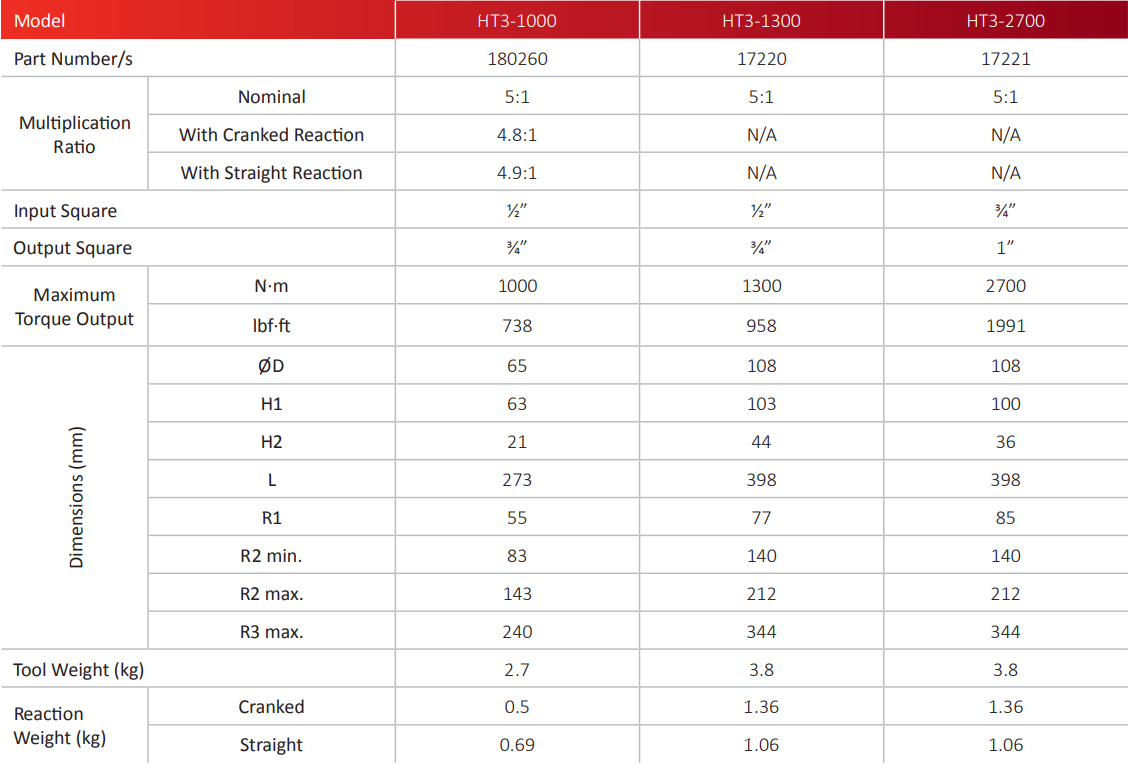 § 1300 N·m版本的套件中包含備用的3/4“輸出方塊。