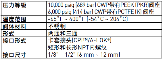 1、操作扭矩小。2、手動、電動和氣動控制可選。3、緊湊型FNPT螺紋形式適用于狹小空間。4、防吹出兩片式閥球/閥桿設計。5、流路各處工作壓力相等。6、PEEK耳軸式密封延長閥門使用壽命。7、兩通和三通形式可選。8、面板安裝厚度可達3/8" (9.6mm)。9、無需調節填料。10、顏色標識防破裂手柄。11、手柄標識流路方向。12、手柄限位銷。13、„多種US常用和SI標準接口可選。14、閥桿頂部標記流路方向。15、100出廠測試。16、緊湊型設計。17、HCT爐號追蹤