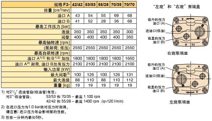 PARKER定量泵F2系列技術規格: