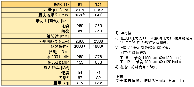 PARKER定量泵T1系列技術規格: