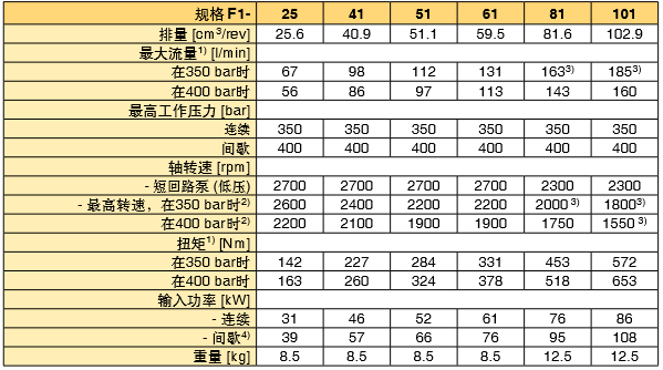 PARKER定量泵F1系列技術規格: