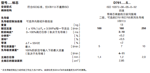 系列是可用作三通、四通應用的流量控制伺服閥,適用于位置、速度、力或壓力伺服控制系統,并具有很高的動態響應。專門為必須同時滿足大流量以及高動態特性要求的應用而開發設計的,集成式電路已采用SMD技術,可配備D761或D765系列先導閥。D791額定流量*大為250l/min。