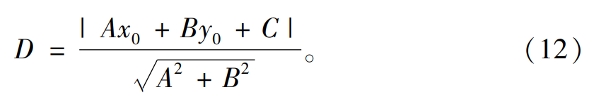提取出缺陷區域后可以計算出該缺陷的最小外接矩形與該外接矩形的主軸直線公式,Ax+By+C=0于是小圓圓心(x0,y0)至主軸直線的距離D為