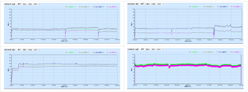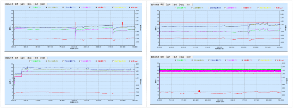 在測試中,對每套軸承的溫度、溫升進行逐一監控,進行詳細記錄每套軸承在每個時間點的溫度狀況,對整個測試的溫度變化形成趨勢,是否形成異常高溫等;