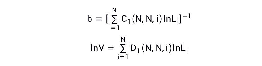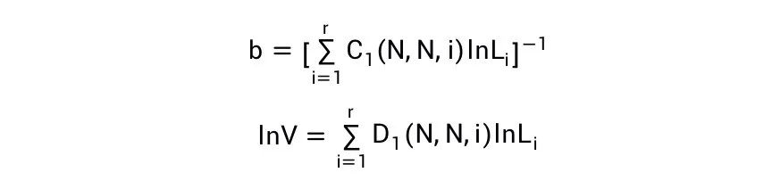 依據b、v估計L10t、L50t以及Re基本額定壽命試驗值: